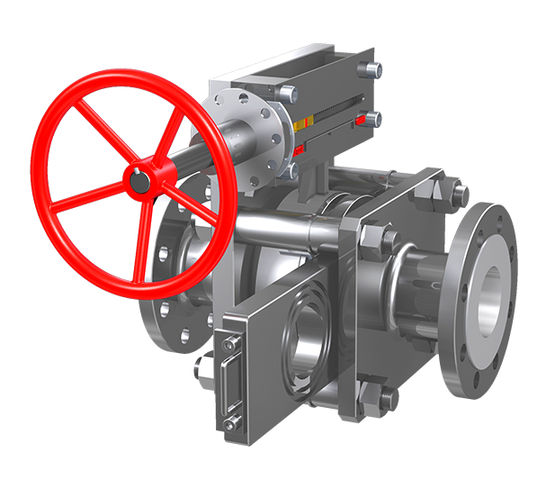 根據(jù)金屬硬密封三偏心蝶閥的機構(gòu)進(jìn)行改進(jìn),研制出雙向流硬碰硬旋球閥。旋球閥廣泛用于水泵出口端、管網(wǎng)系統(tǒng)、回收系統(tǒng)、高位水槽、易水淹的污水系統(tǒng)、防倒流系統(tǒng)等